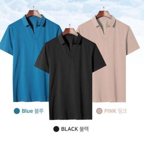 남자 니트 반팔티 여름 쿨 구김없는 오픈 카라 셔츠 반팔 니트 남성 티셔츠 빅사이즈 M~2XL