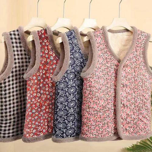 [셀럽하우스]꽃무늬 KEFI5870 융털 윈터 촌캉스룩 김장조끼 따뜻 할머니조끼