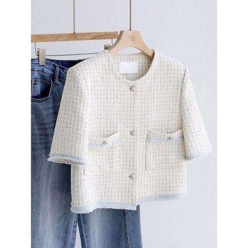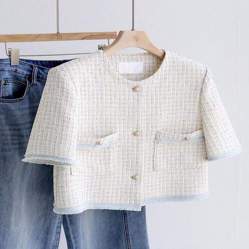 [유니크] 루테스 체크 배색 남방 레이어드 크롭 데님 청자켓 (2color)