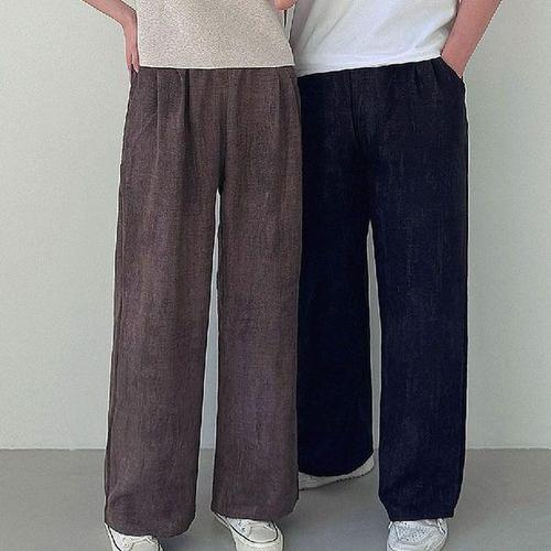 [에이치플러스몰]남자 여자 린넨 오버핏 바지 와이드 팬츠