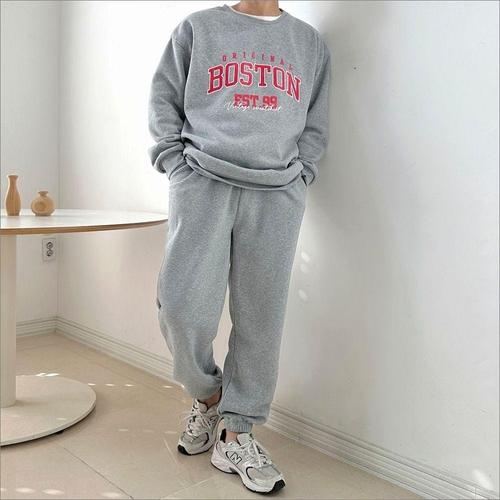 [에이치플러스몰]레터링 남자 기모 맨투맨 심플 조거 밴딩 상하의 세트