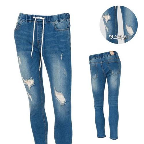 [셀럽하우스]지니어스 LJWS4183 남성 밴딩 찢청 바지 MCPJU8007F9