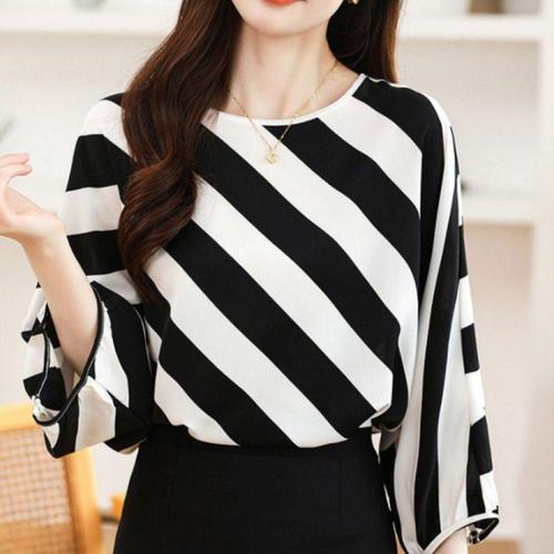 7부 슬림핏 스트라이프 셔츠 여름 얇은 소재 WFLLN6R