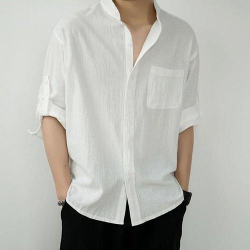 데일리 캐주얼 남성 여름 차이나 카라 린넨 7부 셔츠