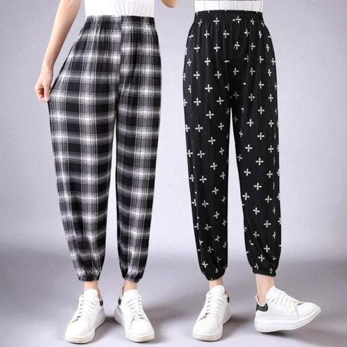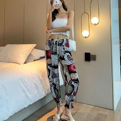 [에이치플러스몰]여성 여름 패턴 밴딩 셔링 쿨팬츠 냉감 엄마 고무줄 바지