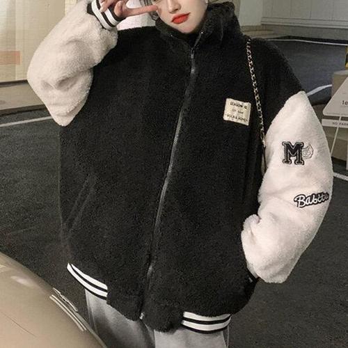 [굿쇼핑몰_의류]뽀글이 플리스 후리스 배색 집업 양털 자켓 야구점퍼
