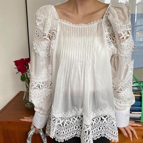 [다잇템]여자 레이스 스퀘어넥 비침 포인트 블라우스