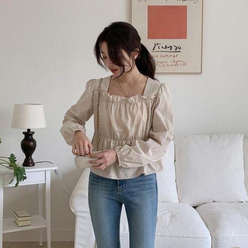 [다잇템]여자 포인트 스퀘어넥 잔주름 블라우스