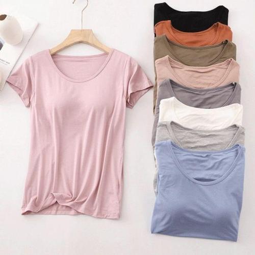 노브라티 브라캡 내장 브라탑 노와이어 모달 반팔 티셔츠