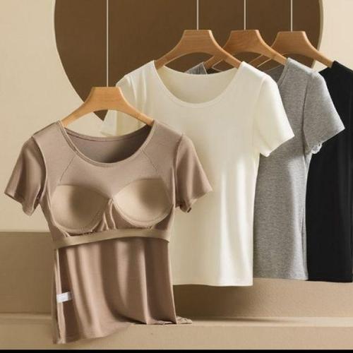 3부 여성 브라 런닝 패드반팔 캡티셔츠일체형브라 노티 반팔탑 반팔 내장 노셔츠 셔츠 탑티
