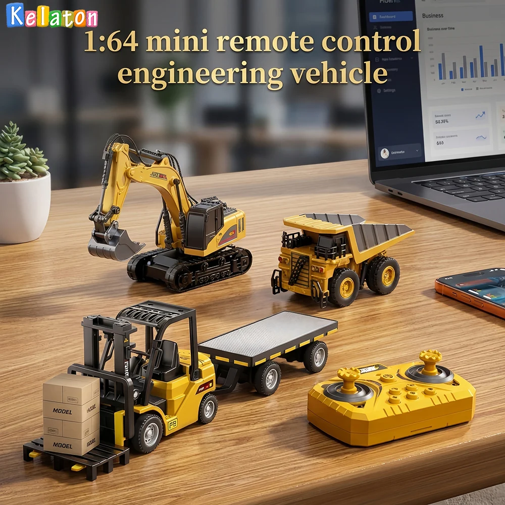1:64 블루투스 리모컨 크레인 및 포크리프트 일체형 데스크탑 미니 합금 장난감 자동차 트레일러 포함 크리스마스 선물 컬러 박스