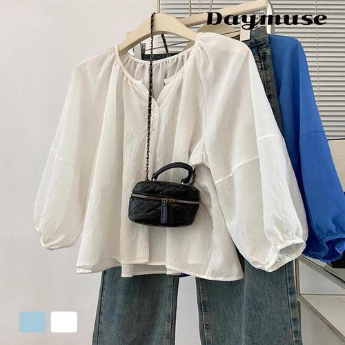 [셀럽하우스]여성 NJSS2613 캐주얼 노카라 라운드넥 셔링 플레어 셔츠