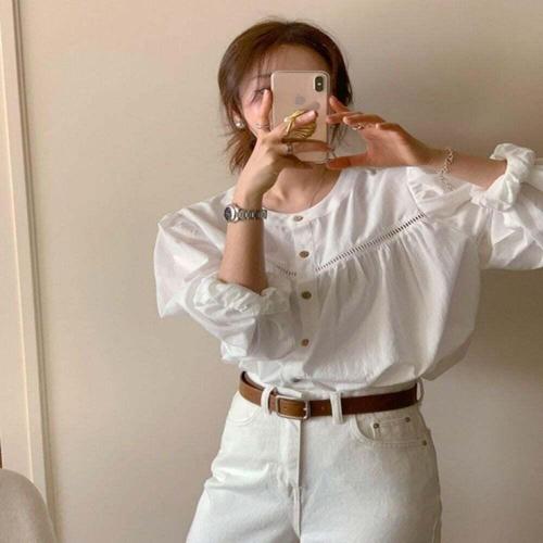 [셀럽하우스]단아한 UDGU3298 여성 캐주얼 스타일 긴팔 필수템 셔츠 노카라