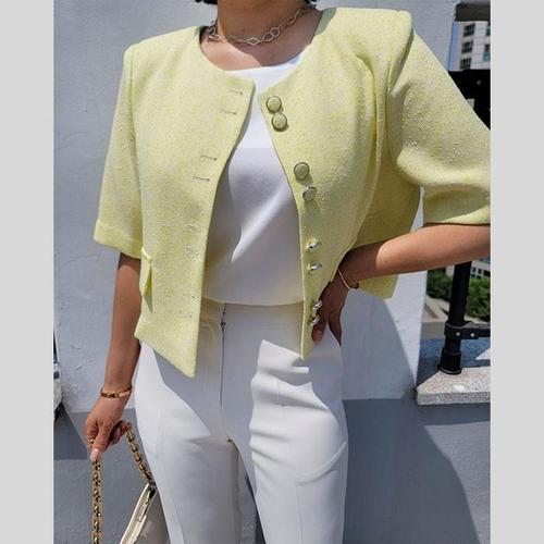 [셀럽하우스]면 RJUO6218 반팔 노카라 자켓 여성 여름 데일리 클래식 슬림
