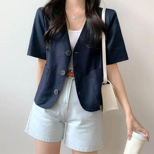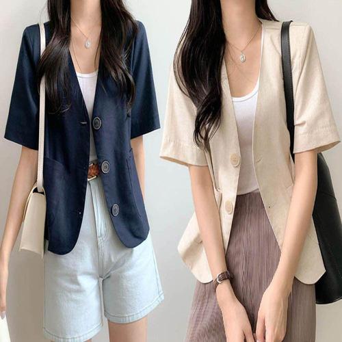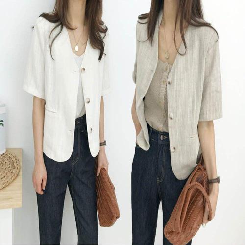 [셀럽하우스]자켓 IXHD3608 여름 브이넥 반팔자켓 노카라 반팔린넨자켓 린넨