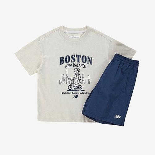 [뉴발란스]키즈 일러스트 포인트 반팔 세트 NK9YGB212U-BS 티셔츠