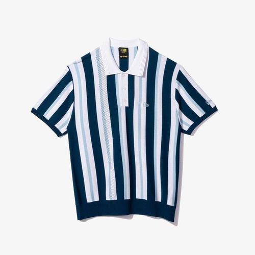 갤러리아_뉴에라 레트로 스트라이프 자카드 반팔 스웨터 블루(13679594)