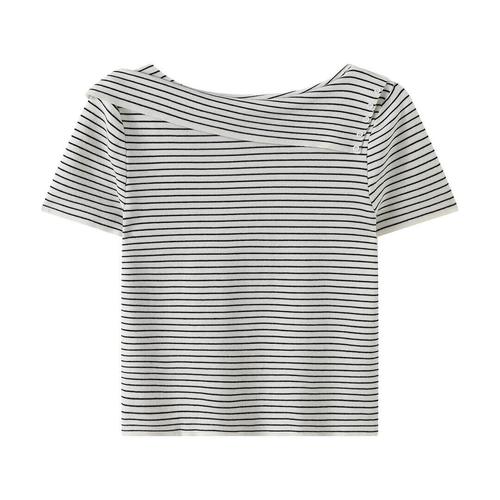[미니멈에브리데이][미니멈 에브리데이]언발 오프 숄더 스트라이프 슬림 반팔 니트 (EC2KT048D)