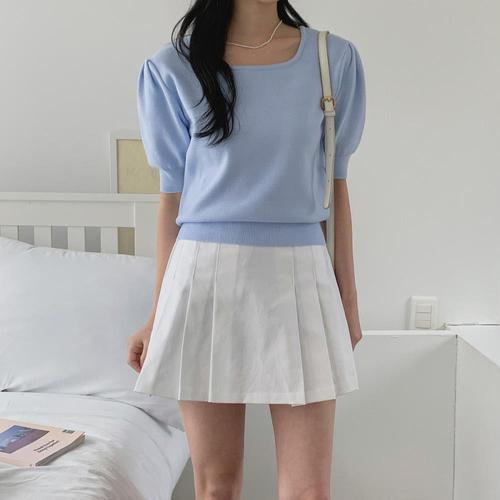 [셀럽하우스]여성 PUMF1014 퍼프숄더 배색 반팔 니트