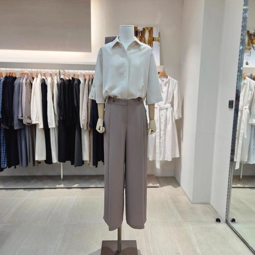 아떼바네사브루노 25SS 다크베이지 단색 면혼방 팬츠 VIPA5E110I3