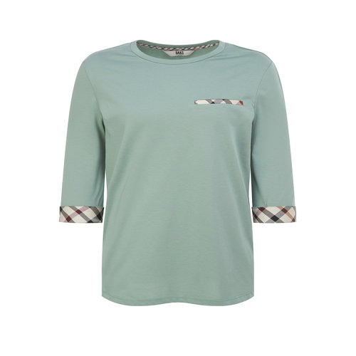 닥스 여성 [스테디셀러]그린 체크 배색 면 혼방 7부 소매 티셔츠 (WKTS5BU01E2)