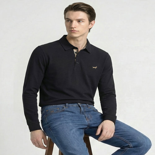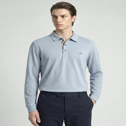 닥스 신축성 좋은 남성 체크 포인트 긴팔 카라 티셔츠