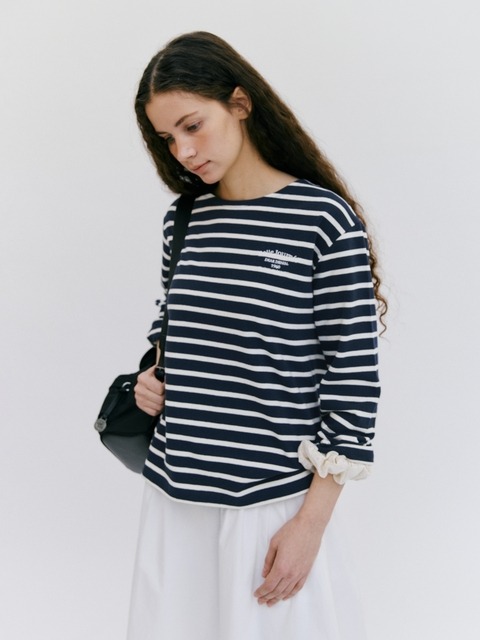 [드파운드] 스트라이프 라운드 넥 티셔츠 네이비
