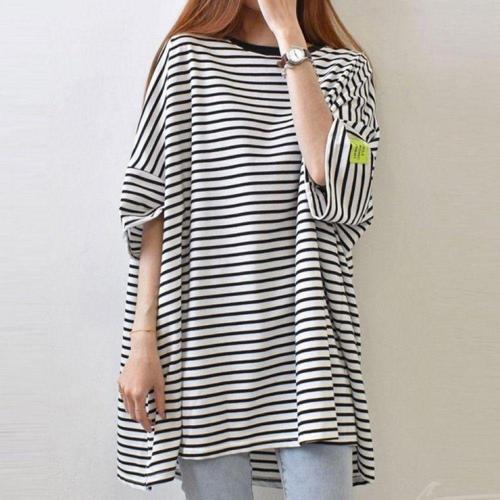 여성 2컬러 스트라이프 크롭 캐주얼 티셔츠 LK-T006