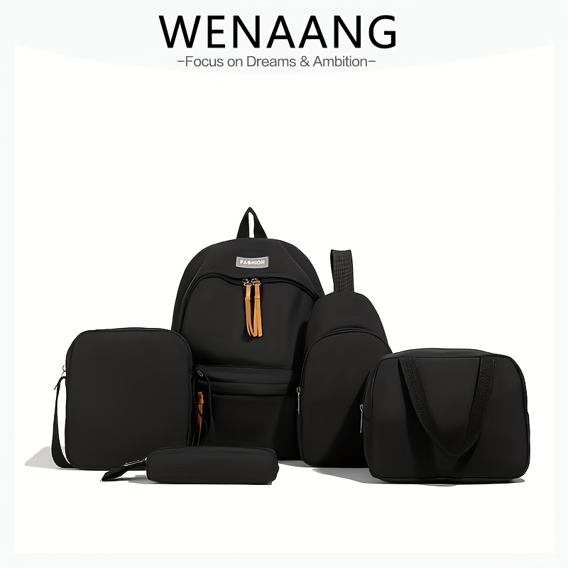 TEMU 5개 세트 고품질 나일론 십대 백팩 여성 여행 가방 백팩 학교 가방 단색 책 가방 신상 십대 백팩 대용량 여행 가방 학교 시즌 신생 학생 캐주얼 가방, 십대용