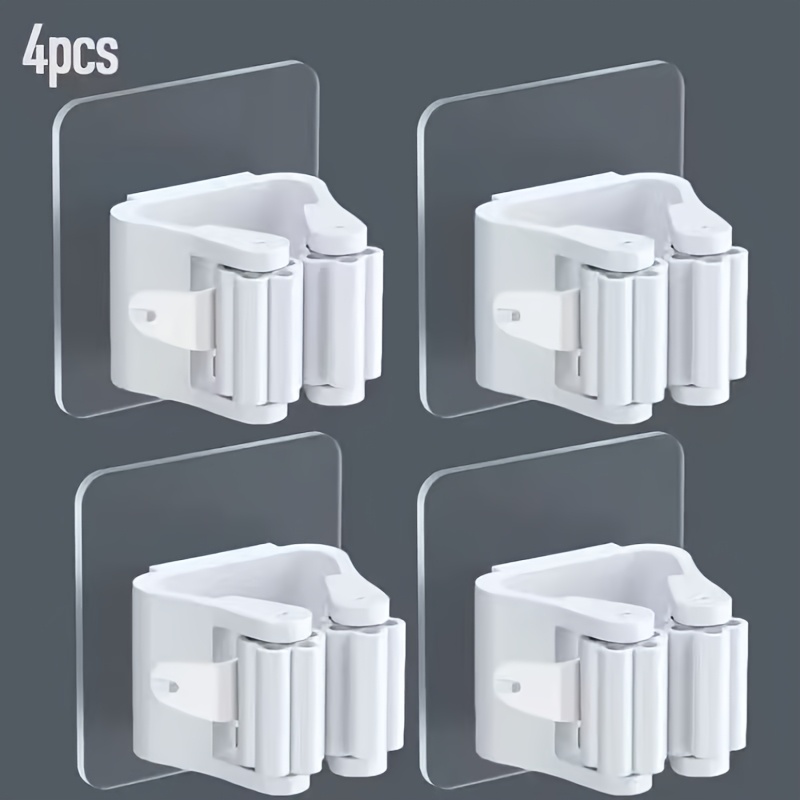 TEMU 4개 무타공 벽걸이형 대걸레 빗자루 걸이대 - 튼튼한 플라스틱 대걸레 수납 클립 및 빗자루 고리, 공간 절약형 수직 수납, 가정, 주방, 욕실용 (나사 없음/셀프 설치) - 모던하고 깔끔하며 실용적인 고리, 다용도 고리