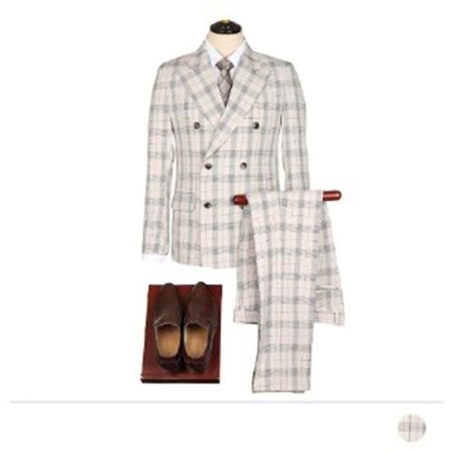[STCO] 남성 엑스트라파인 울 31% 더블 브레스티드 수트 세트 클래식핏 베이지