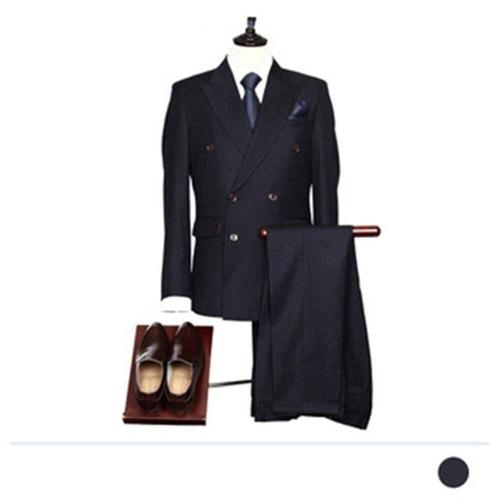 남성용 더블 브레스트 슈트 세트, 바지가 포함된 비즈니스 정장, 클래식 6버튼 디자인