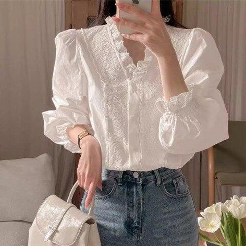 [아리엘스타일]레이스디테일 여리무드 퍼프블라우스 엔루마 블라우스