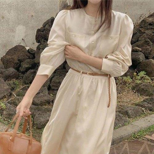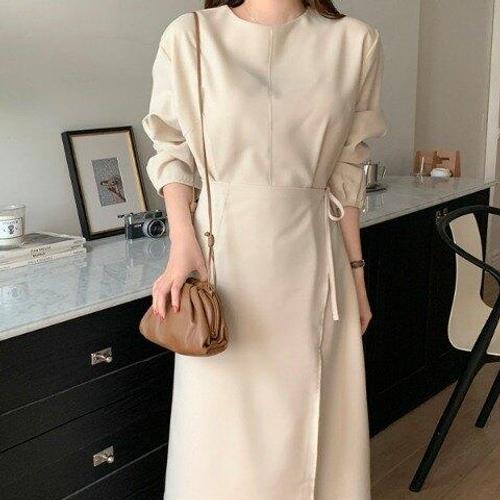 [아리엘스타일]스퀘어넥 여리핏 퍼프롱원피스 엔스왈롱원피스