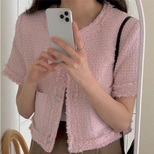[아리엘스타일]반팔트위드 여리핏 크롭자켓 폴리빈트위드자켓