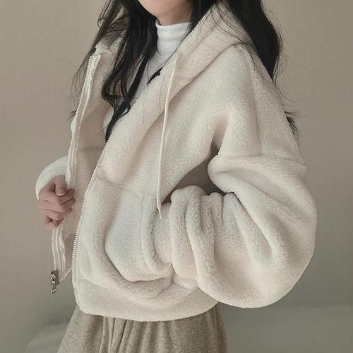 [다잇템]여자 양털 클래식 덤블 세미크롭 후디집업 자켓