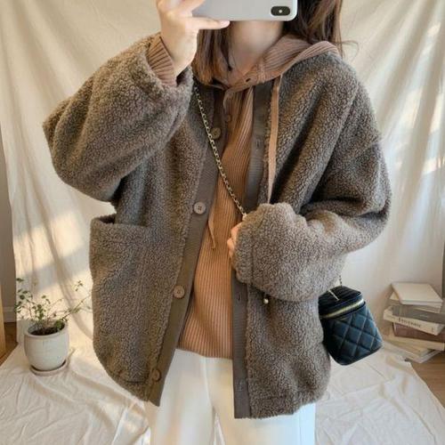 CLOREX 겨울 떡볶이 코트 뽀글이 퍼 자켓 아우터 램스울 코트