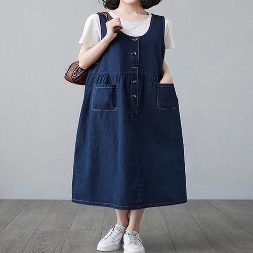 로미홀리-여성 빅사이즈 청멜빵 데님스커트 롱 원피스-S9000