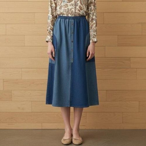 [옷자락]여성 사계절용 데일리 워싱 뒷밴딩 데님 롱스커트