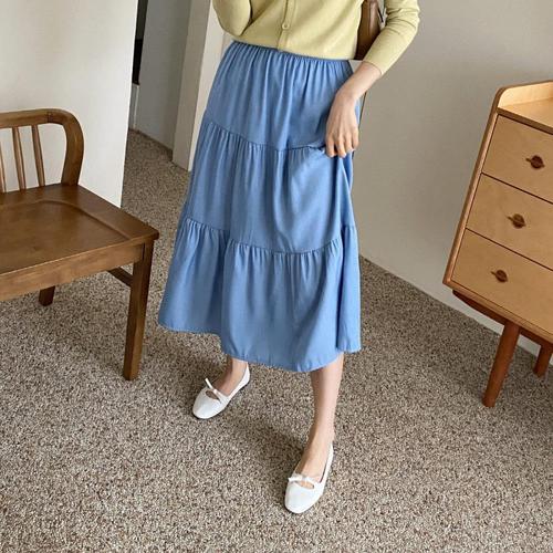 [옷자락]여자 허리밴딩 에리카 데님 캉캉 롱스커트