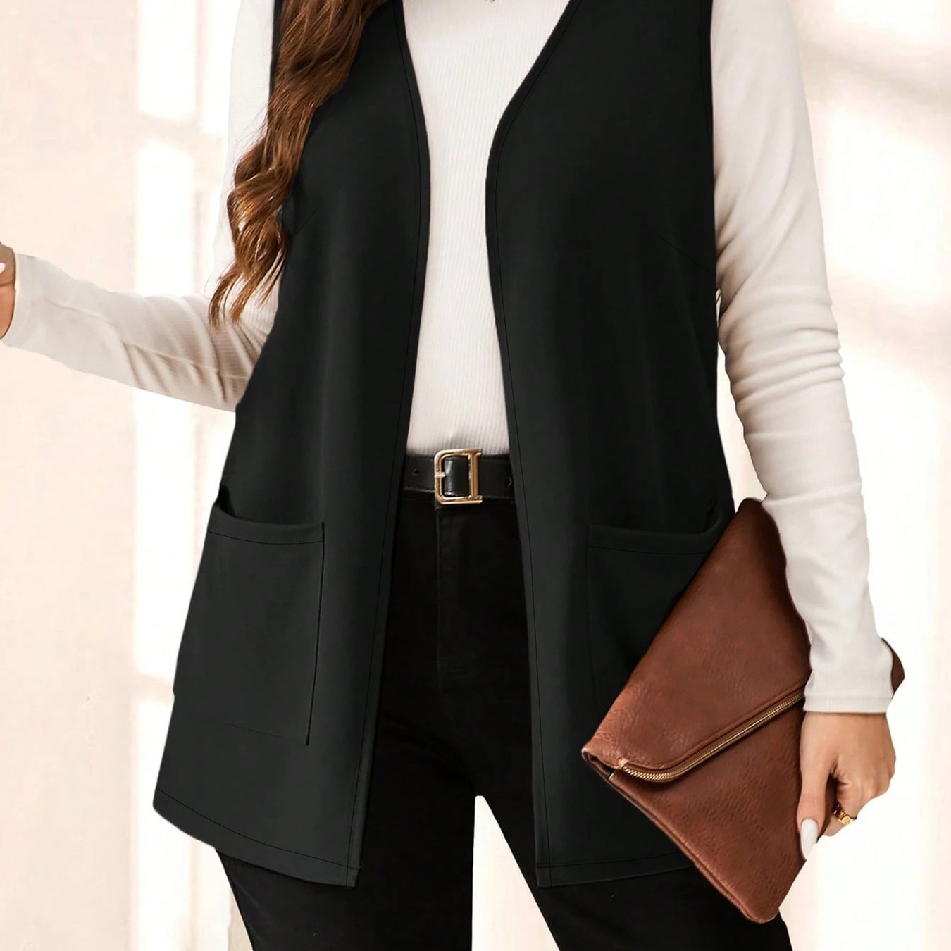 TEMU 플러스 사이즈 - 플러스 사이즈 - 플러스 사이즈 여성 의류, 단색 우아한 조끼 코트