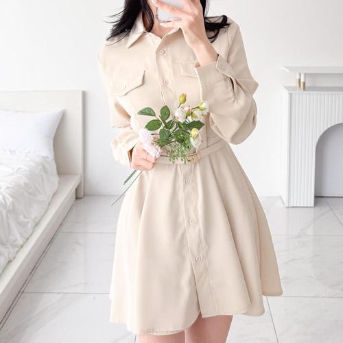 [옷자락] [시즌오프]데이트룩 카라넥 벨티드 미니 플레어 원피스_5