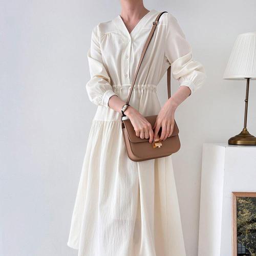 [옷자락] [시즌오프]가을 데이트룩 스트링 주름 77사이즈 롱원피스_5