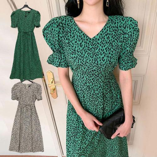 [옷자락]여자 우아한 데이트룩 하객룩 레오파드 미디 원피스