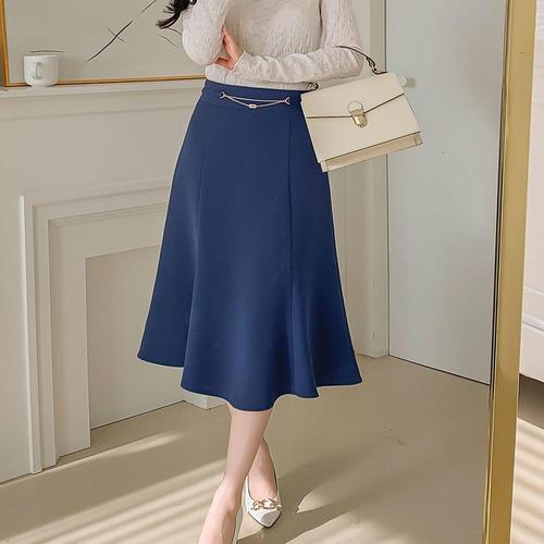 [옷자락] [시즌오프]데이트룩 하객룩 체인 절개 플레어 미디 스커트_5