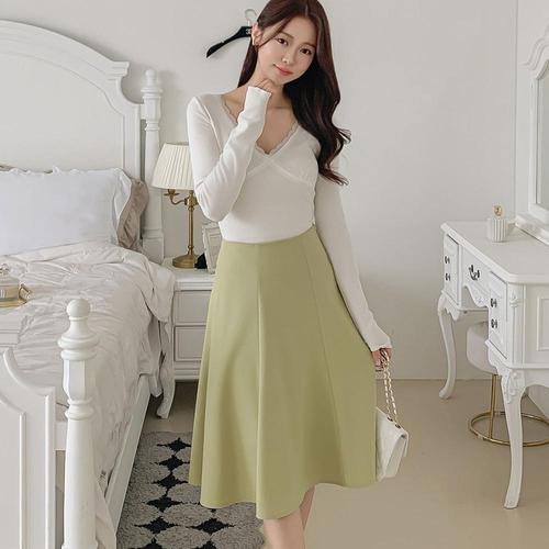 [옷자락] [시즌오프]썸머 하객룩 절개 데이트룩 플레어 미디 스커트_5