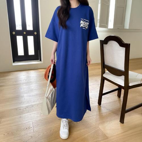 상상그이상 여성용 국내제작 쌍둥이 롱원피스 귀여운 캐릭터 프린팅 활동성 좋은 옆트임 데일리로 가볍게 입기 좋은 사계절용 반팔원피스 데일리룩