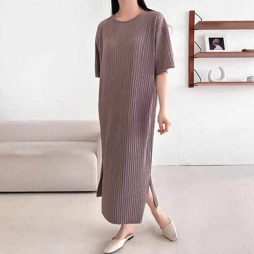 [GGPX]데일리 무지 라운드 반팔 롱 원피스 (GQBOW029D)