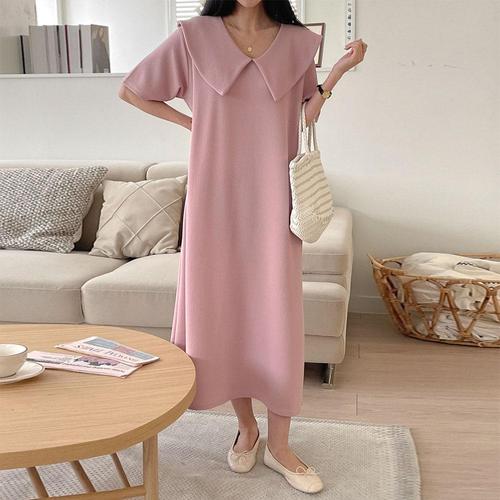 [문에이블]문에이블 여자 여성 봄 여름 데일리룩 루즈핏 스판 세일러 빅카라 반팔 롱 원피스