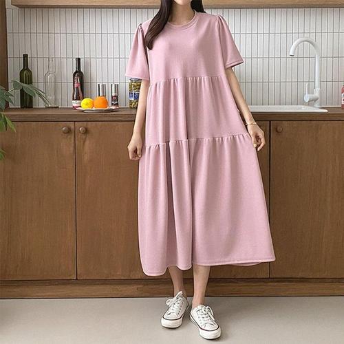 [옷자락]여자 편안한 데일리룩 루즈핏 반팔 원피스